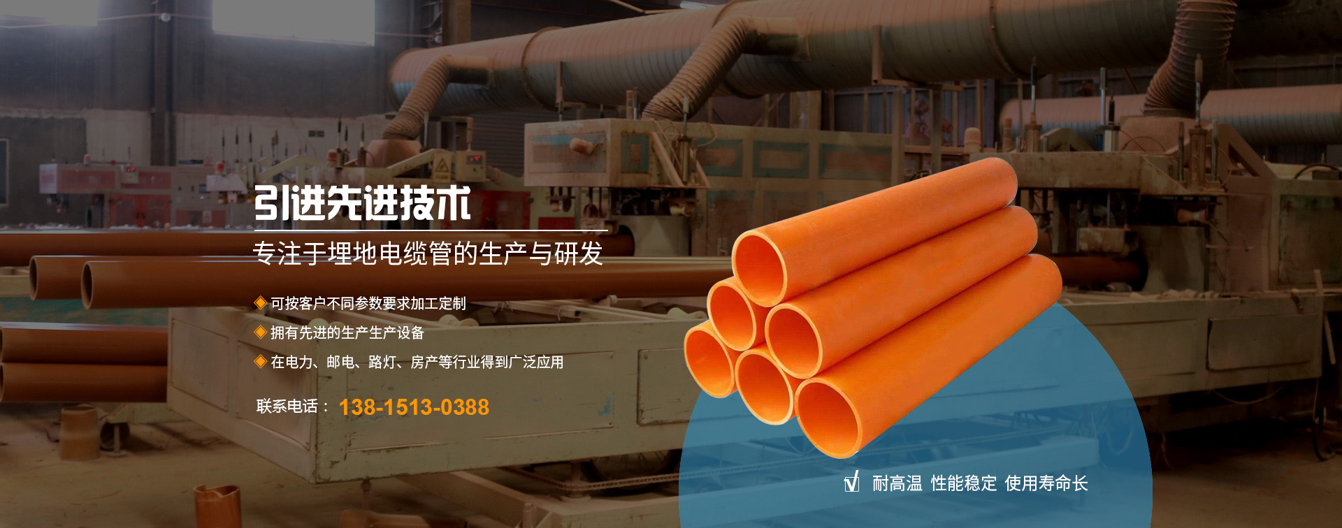 無錫邁力塑業科技有限公司地處長江三角洲蘇錫常經濟發達區,坐落于江南名鎮--華士鎮,緊鄰天下第一村“中國華西村”,緊靠沿江高速華西道口,距上海130公里、南京150公里,地理位置優越,交通十分便捷。       本廠創辦于2010年,全廠職工總數為42名,工程師技術人員5名,擁有國內先進的錐形雙螺桿、單螺桿擠出生產線9條,是專業生產PE頂管、PVC-U埋地式普通電力電纜管套、PVC-C高壓電纜套管、MPP電纜套管等管材、管件、BWFRP電纜管拉擠纏繞管。       本廠研制生產的埋地電力通訊電...